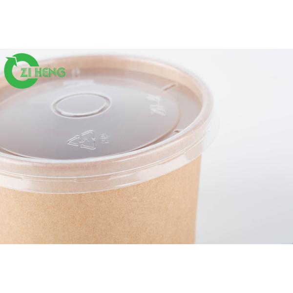 Food Grade Kraft Disposable Paper Recyclable 12oz Soup Bowls With PP White Lids Images |